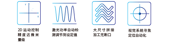 高精度運動控制 / 全自動功率檢調 / 無斷口拼接加工 / 自動化尋焦定位